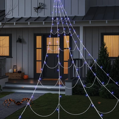Give your haunted decor a creepy-cool glow with these 102-Count 16-Foot x 10-Foot LED Color-Changing Spiderweb Halloween Miniature String Lights from Hyde and EEK! Boutique™. Great as a flexible and frightening lighting option for your indoor or outdoor entertaining space, these decorative string lights feature a white-wired spiderweb design, adorned with 102 LED miniature bulbs to bring haunting, color-changing illumination in orange and purple to your holiday setup.