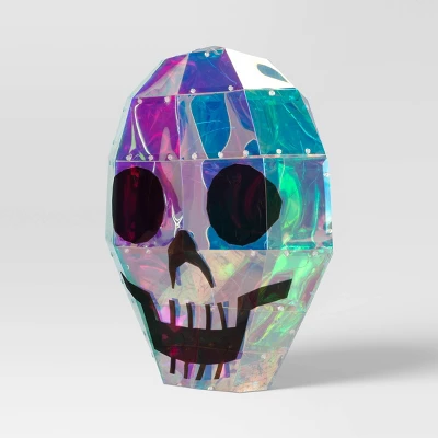 Light up your Halloween decor with the artful and frightful vibes of this 16-Inch Narrow Iridescent Skull 3D Novelty Modular Light Structure from Hyde and EEK! Boutique™. Made of plastic, this decorative light features a 3D skull figurine in iridescent purple and aqua hues, accented with black skull face detailing. It’s adorned with modular, cool white lights for a burst of festive, sparkling effect. Set it anywhere in your house or in covered outdoor locations where you want to infuse a little extra seasonal scare and shimmer.