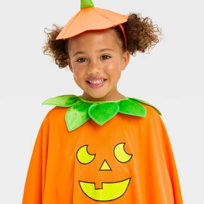 This Toddler Blacklight Responsive Pumpkin Poncho Halloween Costume Kit from Hyde and EEK! Boutique™ lets your little one be their adorable best on Halloween. Made from soft fabric, this costume kit includes a pumpkin-style poncho in orange complete with eyes, nose and mouth, and a pumpkin-top headband for a coordinated look. Plus, this costume glows under black light for even more fun at any Halloween party.