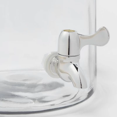 Serve a variety of cold beverages to family and friends with this Glass Beverage Dispenser from Threshold™. Crafted from glass with a lidded top for a design that’s both functional and stylish, this eight-quart glass dispenser features a smooth, clear exterior that lets you easily view the inside contents, and its plastic spout lends a fine finishing touch to the overall design. Whether used for serving beverages or simply upgrading your kitchen counter area, this glass beverage dispenser makes a chic and functional drinkware essential. Instruction included for spigot usage.