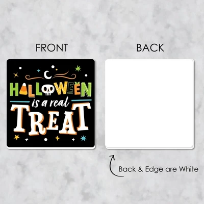 Jack-O’-Lantern Halloween Coasters INCLUDE 6 sturdy and professionally printed single-sided Drink Coasters. Protect your table or desk with funny Halloween Coasters. DRINK COASTER SET: This set of 6 Coasters has a different funny Halloween saying for each coaster including Trick or Treat, Let’s Get Spooky, Boo!, Happy Hallo-Scream, Halloween is a real Treat, and Creepin’ it Real. Use the Coasters for hot/cold drinks to protect furniture and tabletops from drips, spills, and condensation. FUN PARTY FAVOR: Drink Coasters make for a perfect gift idea! With multiple designs, guests can use a Jack-O’-Lantern Halloween Coaster as a drink marker and then take home as a fun party favor. Or gift the full set as a unique housewarming present. PREMIUM DECORATIONS: Kids Halloween Coasters are made of sturdy PVC material and SIZE 4 inches width x 4 inches length x 1/8 inch thick. Professionally printed on one side, back and edge of coasters will be white. MADE IN THE USA: Jack-O’-Lantern Halloween Coasters are designed and manufactured at our Wisconsin facility using materials that are Made in the USA.