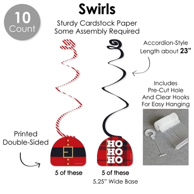 Swirls Includes: 10 total swirls with 2 designs – 5 count per design, that hang with an accordion-style spiral. Professionally printed double-sided, the Jolly Santa Claus decoration swirls come with a 5.25″ wide base and a spiral length of about 23″ long. Each decoration swirl comes with a pre-cut hole and clear hooks for easy assembly. Bunting Banner Includes: letter and themed pennants, perfect for your Ho Ho Ho Holiday or Christmas Party. Each pennant measures 5″ wide x 7.25″ tall. Pennants are numbered in sequence and ribbon is included for easy assembly. Table Toppers Includes: 10 centerpiece sticks that come with two shape cut-out designs, each professionally printed double-sided. The centerpiece shapes measure 7.5″ wide x 5″ tall. To use as centerpieces or photo props for your Holiday or Christmas Party, assembly stickers are included for the easy DIY required assembly. Circle Confetti Includes: 30 paper circles with 2 different sizes – 10 large circles, size 3.5″ and 20 small circles, size 2.75″. Professionally printed double-sided, the Jolly Santa Claus circle confetti can be placed flipped over for added variety. Scatter around your table for a delightful accent. Made in the USA: Jolly Santa Claus Decor Galore Party Pack is designed and manufactured at our Wisconsin facility using materials that are Made in the USA.