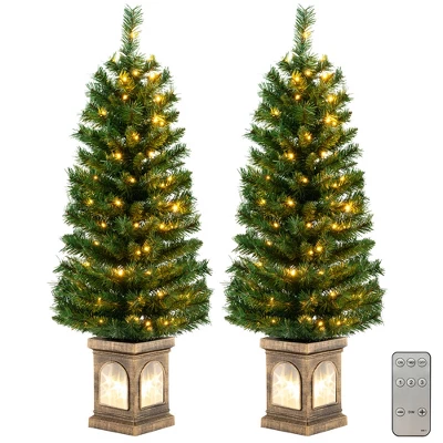 Decked out with 160 branch tips crafted from 100% new PVC, this 4 ft Xmas tree brings a lush & lifelike feel to your holiday while offering great resistance to fire, fading & allergies. Alongside its vivid simulation, the Xmas tree boasts 100 warm white LED lights, all UL certified to ensure a worry-free display. Dazzle your space with the tree’s 3 dynamic lighting modes & adjust the 4-level brightness to suit your festive ambiance. With the convenience of a remote control, you can effortlessly set an auto timer for 6 hours on & 18 hours off, conserving energy. Its weighted base, featuring a stylish starlight design, ensures stability & keeps it standing tall even under the playful swipes of children or pets. No tedious assembly is needed & a pair of gloves is included for effortless fluffing. Ideal for porches & entrances, this slender tree brings the holiday spirit to any space without overwhelming it.