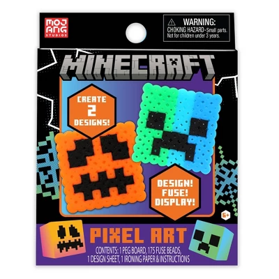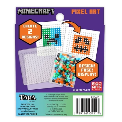 Design, fuse, and display imaginative characters based on the bestselling Minecraft charaters with the pixel art and craft kit by Tara Toy. Add fuse beads to a pegboard to design 2 feature characters. Simple design sheet makes it easy and fun to customize colorful pixel art. Adults help kids cover designs with ironing paper, heat with an iron, fuse beads, and let cool. Then, peel fuse beads off of the pegboard & display. With 175 colorful fuse beads, this kids’ activity toy makes a great birthday or anytime surprise for kids ages 6 years and up. Adult supervision required.