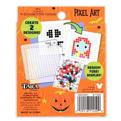 Design, fuse, and display imaginative characters based on a the bestselling Nightmare Before Christmas movie with the pixel art and craft kit by Tara Toy. Add fuse beads to a pegboard to design 2 feature characters. Simple design sheet makes it easy and fun to customize colorful pixel art. Adults help kids cover designs with ironing paper, heat with an iron, fuse beads, and let cool. Then, peel fuse beads off of the pegboard & display. With 175 colorful fuse beads, this kids’ activity toy makes a great birthday or anytime surprise for kids ages 6 years and up. Adult supervision required.