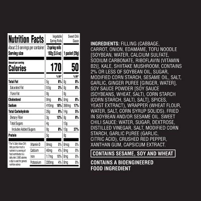 Vegetable Spring Rolls from Good & Gather™ are great to have on hand when you want delicious, Asian-inspired flavors without any fuss. These veggie spring rolls are a delectable combo of edamame, kale, cabbage, carrots, onions, tofu and mushrooms for a savory taste you’ll love. The spring rolls are made without artificial flavors, colors or preservatives. Have one or two on their own with a drizzle of the included sweet chili dipping sauce on top for a savory snack, or cook up a homemade veggie stir fry and rice for a full meal.