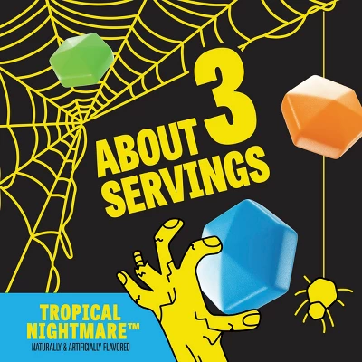 Just in time for Halloween, sink your teeth into these ghoulishly good Gushers Tropical Nightmare Fruit Flavored Snacks. Bite down on the chewy exterior for a burst of gooey liquid and some spine-chilling fun! Pack a handful and add to the lunch box or backpack, or keep your own secret stash for a bewitching little snack. These tasty bites are gluten free; they’re perfect for sharing with family and friends. Munch on some while watching scary flicks, or just to bring on the Halloween spirit at snack time. Pour some out during pumpkin carving for ghoulish inspiration. They’ll be a hit at the costume party or any fright night get-together. When it’s time to get spooky, stock up on these snacks for a tropical taste that’s bound to leave you screaming for more.