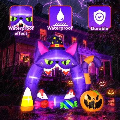 【Eye-Catching at Night】Fun Blackcat photo frame inflatable decoration will turn your garden into a Halloween party! 7 feet tall Blackcat photo frame outdoor decoration with a cute pumpkin, and surrounded by red rotating light effects. It can also be used as a photo-taking mecca, so your family and friends can have fun and enjoy themselves on Halloween night. Halloween Decorations Outdoor Halloween Inflatables Decoration 【Easy to Use】 The built-in fan can instantly and quickly expand, and the built-in LED lights light up simultaneously to emphasize the Halloween festive atmosphere. The product is lightweight and reusable, easily accompanying you through multiple holidays. Be careful to close the bottom zipper to avoid air leakage. After use, open the zipper for quick venting and easy storage. Halloween Decorations Outdoor Halloween Inflatables Decoration 【Safety and High Quality】Made of waterproof polyester fabric, well stitched to withstand winter conditions. It can be used in light rain or snow, but please do not use it in a storm. Fun Halloween inflatable decorations are not easy to scratch and easy to clean. Halloween Decorations Outdoor Halloween Inflatables Decoration 【What’s Your Package】The product comes with LED lights and sandbags, matching plugs and ropes for outdoor fixing use, which can keep the product stable well. The instructions on the box can guide the use. This inflatable Halloween decoration will be a perfect holiday night display; your family, friends, guests, and even passersby will be impressed by its fun look. Halloween Decorations Outdoor Halloween Inflatables Decoration 【Great Halloween Set 】 The Halloween inflatable Blackcat Photo Frame is specially designed for Halloween-themed parties/carnivals/festivals/celebrations, easy to create a Halloween atmosphere, and people of all ages will love it. Perfect outdoor holiday decorations for a Halloween party. Halloween Decorations Outdoor Halloween Inflatables Decoration