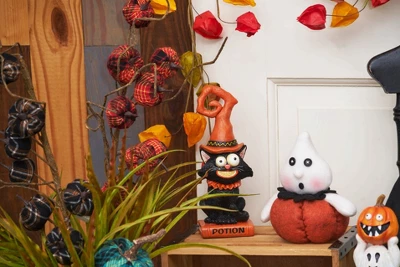Decorate the season with this wonderful Cat w/orange hat Figurine. We have designed these figurines to be displayed on a table, mantle, or any other flat surface in your home. They are perfect for your home or as a gift for a friend or loved one. Get excited for decorating with them with each upcoming season.