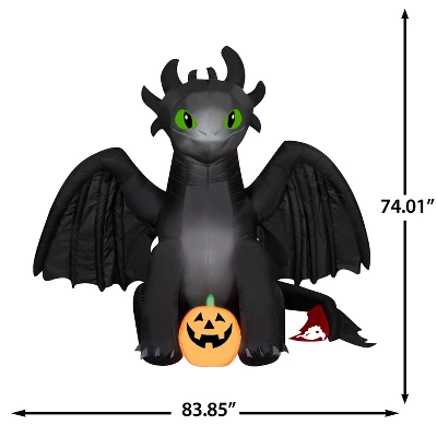 Fans of How To Train Your Dragon will love this Halloween Airblown® Inflatable Toothless! Our adorable Night Fury Toothless inflatable comes in all black with bright green eyes and includes a tiny jack-o’-lantern. He makes a spooktacular addition to your indoor or outdoor Halloween decorations. Setup is a snap for the easiest Halloween decorating ever. Just plug it in, stake it down and watch the magic unfold. Display this How To Train Your Dragon Halloween decoration as a standalone or combine it with other Airblown Inflatables to create a custom scene.