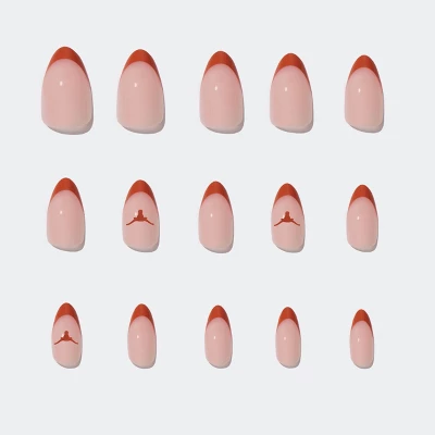 The Texas Longhorns Press-On Nails celebrate the team with burnt orange French tips and logoed accent nails. Designed in short almond with a glossy finish, these are salon-quality fan fingers.