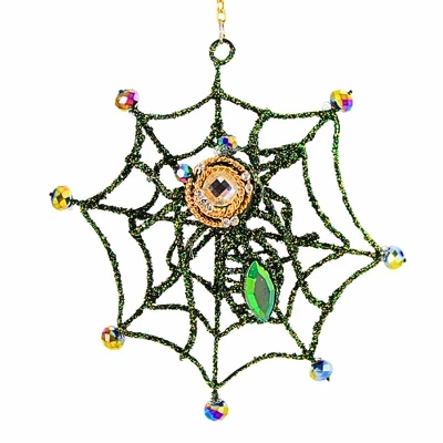 - This spider web charm brings the perfect mix of eerie and elegant with its glittering web, sparkling spider, and rich peacock hues. It adds a magical twist to any Halloween setup and makes even an ordinary bottle feel like part of a witch’s treasure trove.