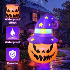 5ft Inflatable Halloween Decoration Ghost And Pumpkin, Blow Up Outdoor LED Yard Display, Waterproof