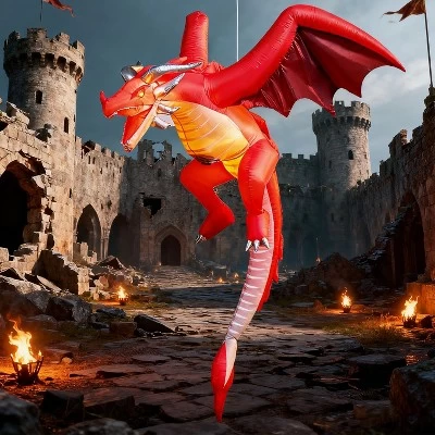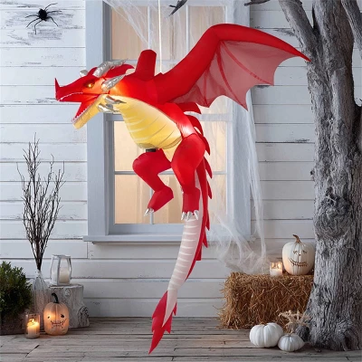 5 Feet Tall Flying Dragon Inflatable brings a mythical touch to your Halloween celebrations with its impressive wingspan and dynamic flying pose. This majestic creature appears to swoop down from the skies, its detailed fierce expression creating an eye-catching centerpiece for your outdoor display. Whether suspended from tree branches or mounted on porch beams, this dragon creates the illusion of a magical creature making a dramatic landing in your yard. Use it as a stunning centerpiece for your haunted garden, an imposing greeter for trick-or-treat events, or a magical backdrop for Halloween costume parties. Its impressive size and mythical theme work equally well for haunted house entrances, school Halloween carnivals, or community fall festivals.