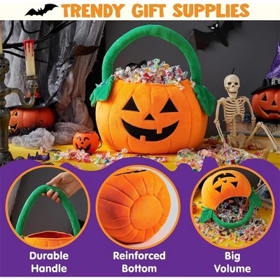 - Our pumpkin plush bucket is incredibly versatile. Use it as a Halloween party favor, a gift basket filler, or a charming decoration. Whether you’re hosting a party, organizing a school event, or decorating your home, this bucket is a perfect choice for adding festive charm.
