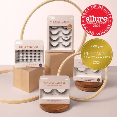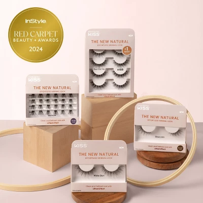 It’s all about The New Natural. KISS presents a new lash collection, designed for a “no makeup, makeup” aesthetic. This trend is about flawlessly imperfect lashes, featuring uneven, sparsely distributed lash patterns for a remarkably natural effect. Features an invisible, thinner lash band that will blend seamlessly with your own lashes for ultimate comfort and a clean and defined lifted-up effect that elevates your eyelashes for a brighter, fuller, wide-eyed look.