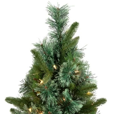 The Ashcroft Cashmere Pine features a mixture of light green tapered tips and long needle bottle brush tips, that are mixed with traditional PVC pine branches to give the tree a nice full look. The 3-foot tree comes pre-lit with clear incandescent mini lights, giving the tree a beautiful warm glow. Product Features:Pre-lit with 100 clear Always Lit lightsAlways Lit lights are a true luxury. You can actually pull the bulbs right out of their sockets and all the other lights on the string will remain litBulb size: mini223 tipsFull profile tree1.5” wide tips2.5′ green lead cordAdditional Product Features:Light sets on tree are UL listed for indoor or outdoor use, however the tree itself is recommended for indoor useIf one bulb burns out the rest will stay lit2-piece easy assembly (including stand)Comes with replacement bulbs and spare fusesComes with a FREE plastic tree standWire gauge: 22Dimensions: 3′ high (from the base of stand to the top of the tree)29″ base diameter (at the widest point)Material(s): PE/PVC/metal/glass bulbs/wireNote: Branches are compressed for shipment, and need to be fluffed out upon arrival to look like the photo.