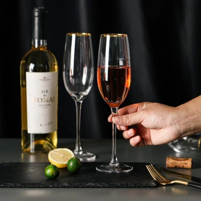Elevate your celebrations with our Gold Rim Champagne Flutes. Each 8-ounce flute is meticulously hand-blown from lead-free glass, featuring a stunning gold rim that adds a touch of luxury to any occasion. The crystal-clear design highlights the effervescence of your bubbly, enhancing both the presentation and the drinking experience. Perfect for upscale events, hotel lounges, or as a thoughtful gift for weddings, anniversaries, or special occasions. These durable flutes are built to resist breakage and chipping, ensuring a lasting addition to your glassware collection. Hand wash only to maintain their elegant appearance.