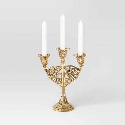 Bring a touch of vintage charm to your decor with this Victorian Halloween Candelabra from Threshold™. Made of metal, this Halloween candelabra features a gold-plated finish for a luxurious feel. Boasting three floral candle holders, this Victorian candelabra is ideal for lighting up candles on Halloween night or during this year’s Halloween party.