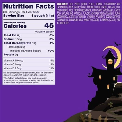 - Contains 60 pouches of Welch’s Fruit Snacks, Halloween shaped Mixed Fruit Variety