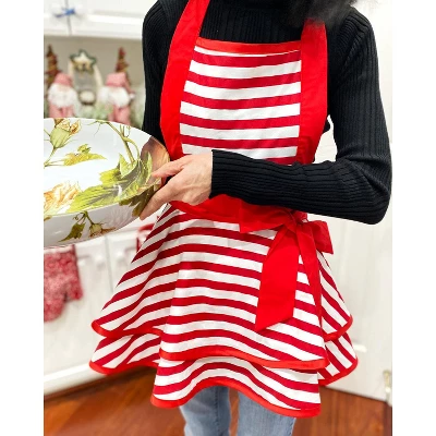 These stylish aprons are perfect for entertaining. The aprons are accented with a feminine cut and playful pattern to spice up your kitchen. The vibrant classic pattern on these aprons are also perfect for the Christmas holiday season. The aprons feature long waist straps that can tie in the front for the perfect fit. The lace aprons have two front pockets for utensils, while the dot and stripe aprons have a double layer skirt for extra protection. The aprons are perfect for keeping stains, grease, and dirt from soiling your clothes. Use them while cooking, baking, cleaning, or gardening.