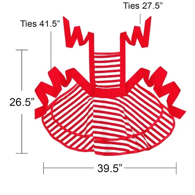- SIZE: Dot / Stripe Aprons: 26.5″L x 39.5″W. Waist 20″. Neck straps approximately 27.5″. Waist straps approximately 41.5″.